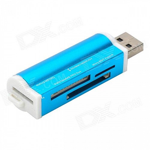 USB 2.0 SD / TF / M2 / MS Card Reader - Blue