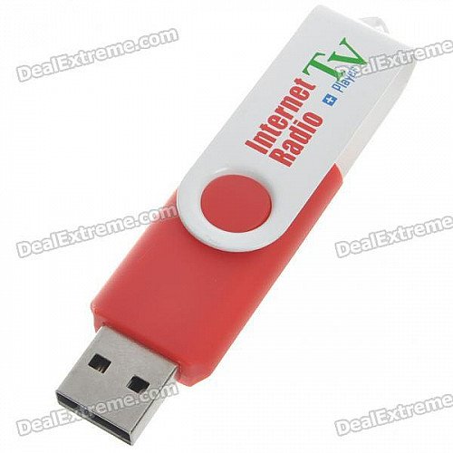 Compact USB Worldwide Internet TV/Radio/Games/MTV/VOD Stations Player Dongle (White + Red)