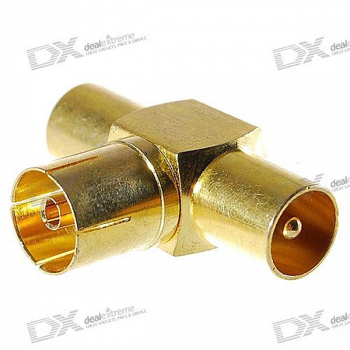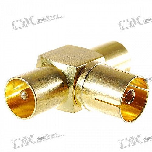 Gold Plated TV Aerial Socket 1-Female 2-Male T-Connector