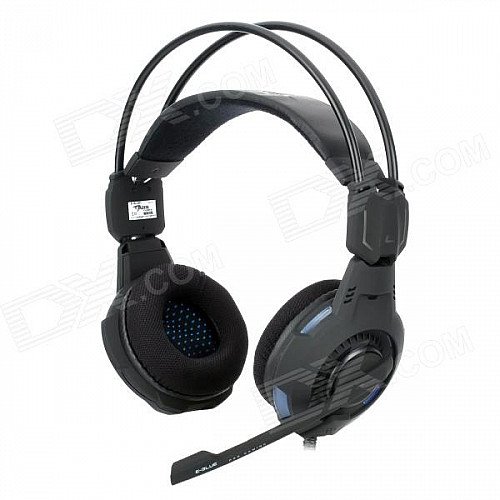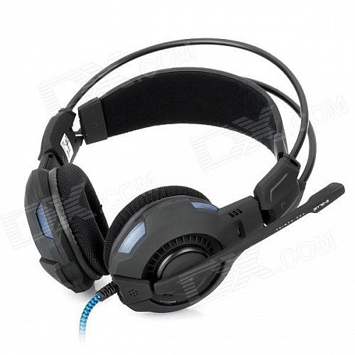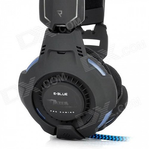 E-3LUE HS909 Mazer Stylish Headphones w/ Microphone / LED - Black + Blue (3.5mm Plug / 280cm)