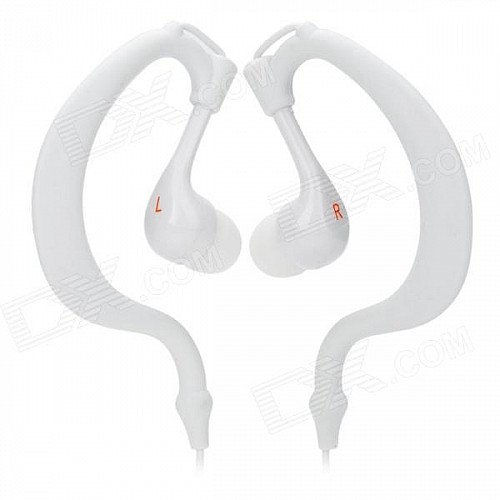 FS-003 Water Resistant Earhook Mega Bass In-Ear Earphones - White (3.5mm Plug / 88cm-Cable)