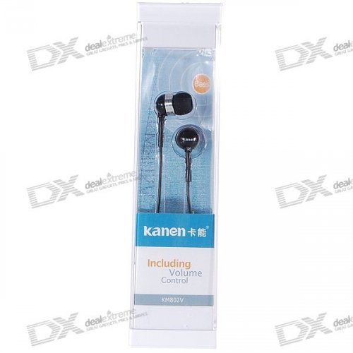 Kanen KM802V Noise Isolation In-Ear Stereo Earphones with Volume Control (3.5mm Jack/124cm Cable)
