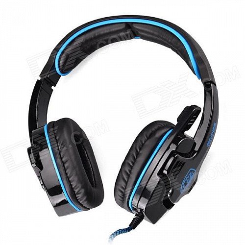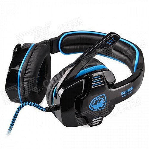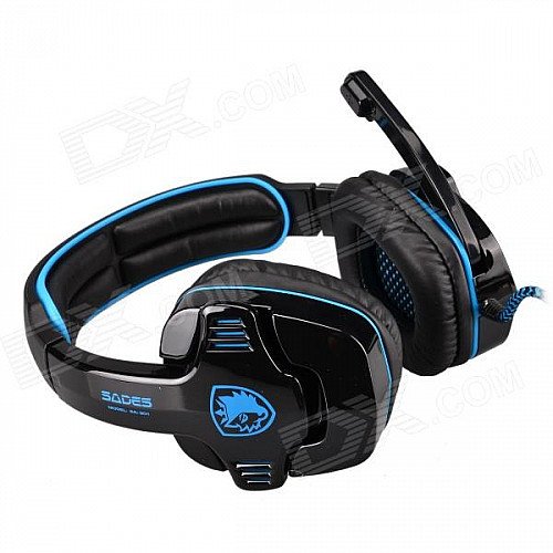 SADES SA-901 USB 2.0 Wired Headphones w/ Microphone - Black + Blue (307cm-Cable)