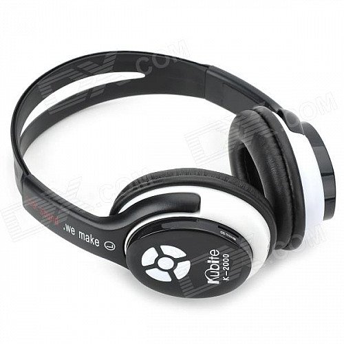 WS-2000 Rechargeable Wireless Headphones w/ TF Card Slot / FM Radio - Black + White