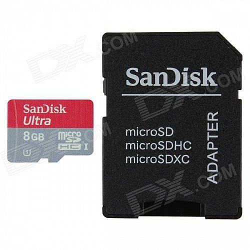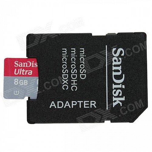 Sandisk MicroSDHC / TF UHS-I Memory Card w/ SD Card Adapter - Red + Grey (8GB / Class 10)