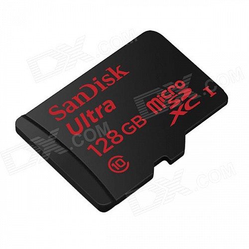 Big features, small card; The SanDisk Ultra® microSDHC™/microSDXC™ UHS-I card is small in size, but big on features. It’s fast, durable, and ideal for recording high quality photos and videos. What’s more, with an unprecedented 128GB capacity, it’s perfect for today’s Android smartphone and tablet users who want the highest possible storage capacity on hand so they never have to worry about running out of space.