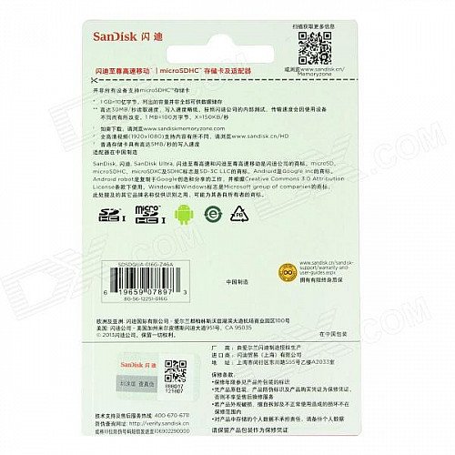 Sandisk Ultra MicroSDHC / TF Memory Card w/ TF to SD Card Adapter - Red + Grey (16GB / Class 10)