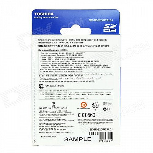 Toshiba FlashAir Wireless LAN W-02 SDHC Memory Card - White (8GB / Class10)