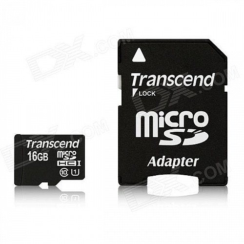 1×Transcend 16GB MicroSDHC Class10 UHS-1 Memory Card with Adapter 45 MB/s (TS16GUSDU1)
