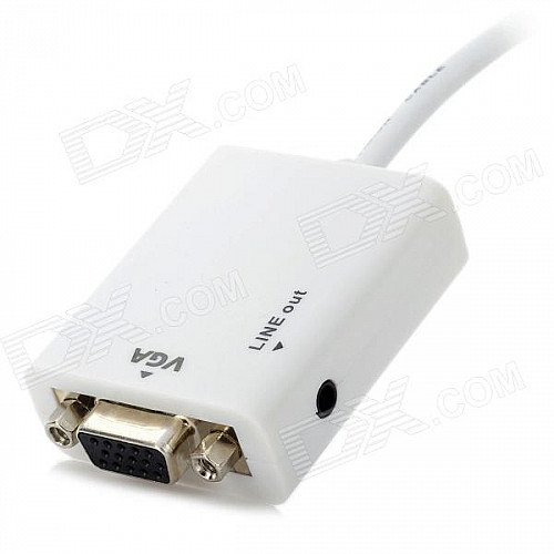 Micro HDMI Male to VGA Female Converter Adapter w/ 3.5mm Audio Jack - White