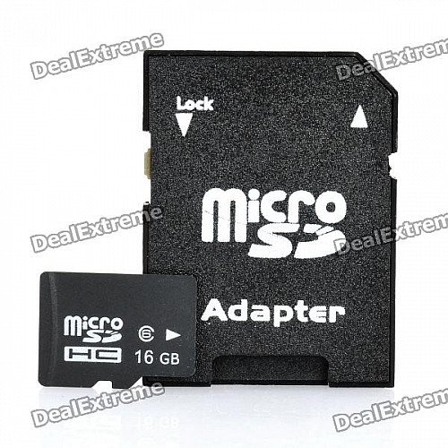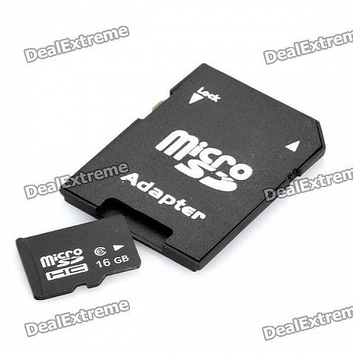 Micro SD/TF Card with SD Card Adapter - Black (16GB / Class 6)