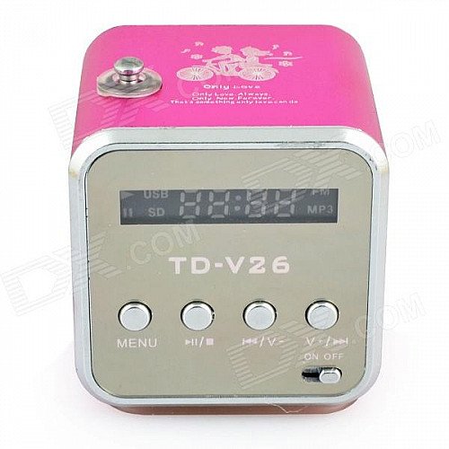 Mini Portable Media Player Speaker w/ TF / FM Radio / Retractable Antenna - Pink + Silver