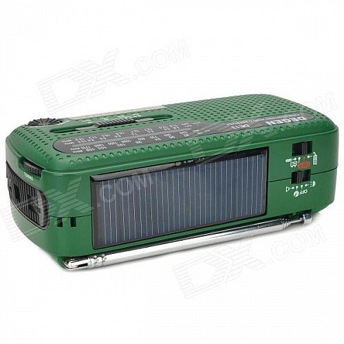 Degen DE13 Multifunction Hand Crank Solar Power FM / MW / SW1 / SW2 Radio w/ LED Torch - Green