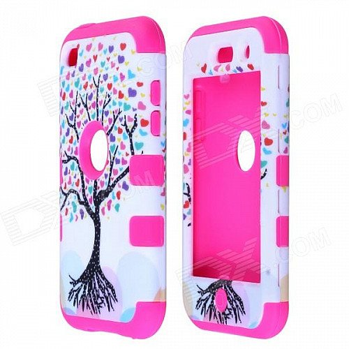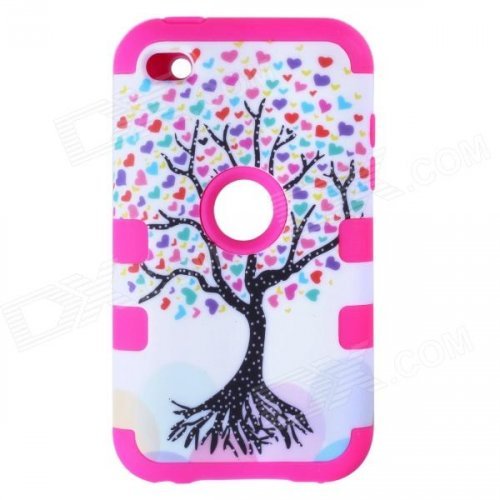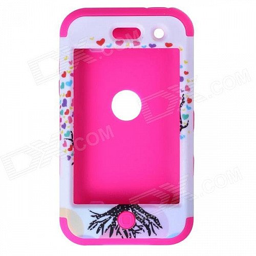 Love Heart Tree Style Protective Silicone Case for IPOD Touch 4 - Dark Pink + White