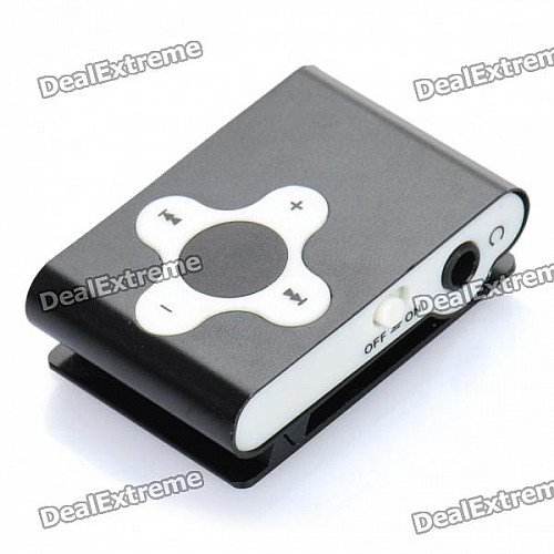 Rechargeable Clip-On Screen Free MP3 Player w/ TF Slot / 3.5mm Jack - Black