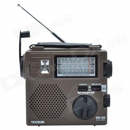 Tecsun GR-88 Portable Hand-held Full Band Stereo Hand Power Generator Radio Receiver w/ Lamp - Brown