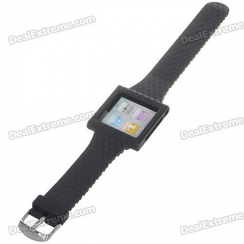 Wrist Watch Style Protective Silicone Case with Band for Ipod Nano 6 (Black)