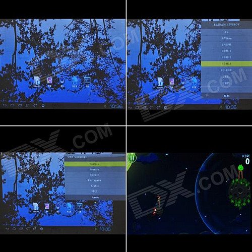 | Other Features | RAM:1GB; Storge:4GB; Chipset:TCC8925; Power consumption: 120W; Wi-Fi: 802.11 b/g; Video format: RM / RMVB / MPEG / MKV / AVI / FLV / VP8 up to 1080p; Audio format: MP3 / WMA / OGG / FLAC / WAV / AAC / APE; Image format: JPEG / BMP / GIF / PNG; Supports Languages: Chinese / English / French / German / Portuguese / Russian / Latin; Built-in browser; Support wireless keyboard mouse; Support online live chat / QQ / MSN / online cinema, online game |