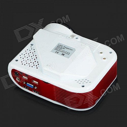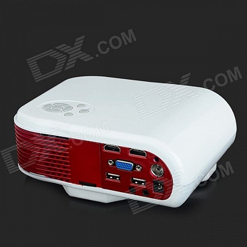 HX-868 Portable 12W LED Mini Projector w/ HDMI / TV / VGA / SD - White + Reddish Brown (EU Plug)