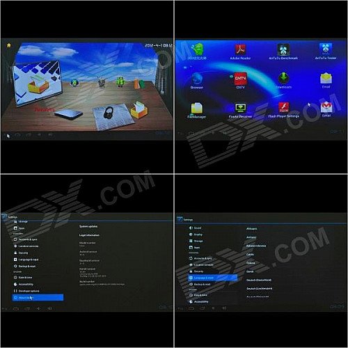 | Other Features | CPU: Cortex A8,1GHz; Video format: AVI(H.264, DIVX, XVID), RM, RMVB, MKV(H.264, DIVX, XVID),WMV, MOV, MP4(H2.64,MPEG, DIVX, XVID), MPEG, MPG, 3GP, FLV(H.263, H.264); Audio format: WAVE, AIFF, AU, MP3, MIDI, WMA, RealAudio, VQF.OggVorbis, AAC, APE; Built-in battery: 4500mAh; Wi-Fi: UM02WB_RL8188, 802.11b/g; Max 54Mbps |