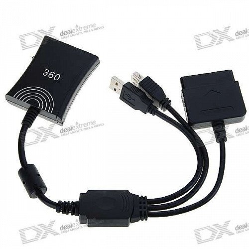 Adapter cable for Sony PS2 to Microsoft Xbox 360 & PS3 converter Cable is compatible with all models of 360 wired controllers. Also Supports converting PS2 to PS3. With great sensitivity, just plug and play, needs no driver. Compact, lightweight, easy to handle and carry. When you use it on Xbox 360, at first , pull the switch to 360; Second, connect the PS2 wired controller to PS2 female plug of this convertor cable; Third , connect the USB male plug of orginal 360 USB wired controller to USB port of this convertor cable, then connect USB male plug of this convertor cable to USB port of 360 console. Now, your PS2 wired controller could working on 360. Furthermore,your original 360 wired controller and PS2 controller could working at the same time. it will be working when you turn on function button of PS2 controller(or 360 controller). When you want this converter to work on PS3, just put the switch to the PS3 mode, then connect the USB male plug of this converter cable to USB port of PS2 console.