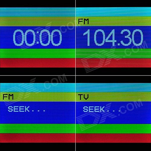 - TV: Press "MODE" under clock mode. The screen shows "TV seek..." and the wearable TV begins automatic search for TV channel. After search, press "CH+" or "CH-" to choose channels; Press "VOL+" or "VOL-" to set volume.