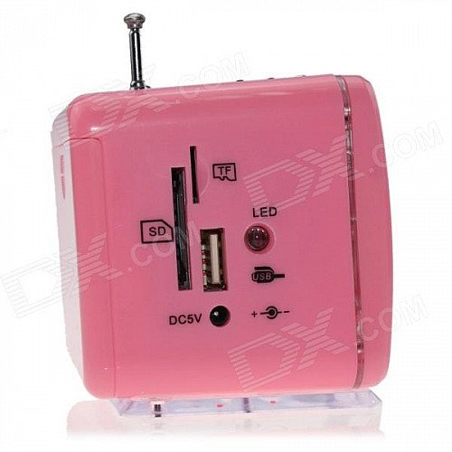 L-908RS Portable MP3 Player Speaker w/ FM / SD / TF / USB / Multi-Color LED - Pink
