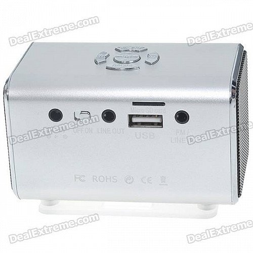 Rechargeable Portable 1.3" LCD TF/USB MP3 Music Speaker with FM Radio - Silver (3.5mm Jack)