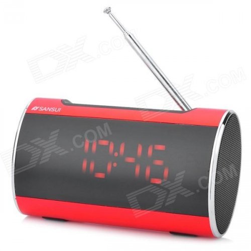 SANSUI A46 3.0" LED 2-CH Bass Media Player Speaker w/ FM / Music Alarm Clock / TF - Red + Black