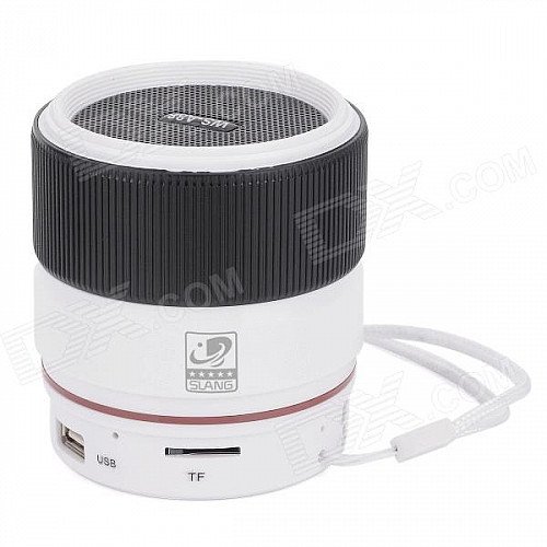 SLANG WS-A88 Lens Style Rechargeable Multimedia Player Speaker w/ USB 2.0 / TF / FM - White + Black