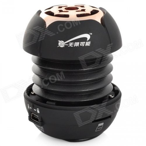 T050 3W Mini Portable Retractable Stereo Speaker w/ TF - Black + Golden (16GB Max.)