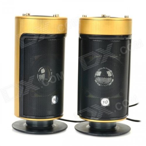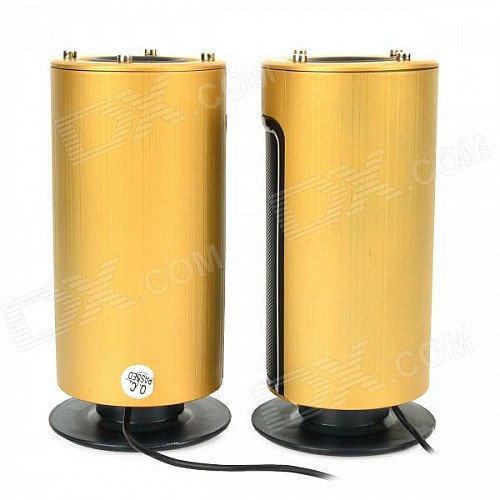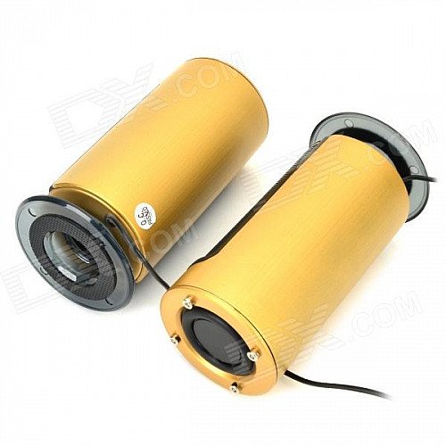 USB 2.0 Cylinder-Shaped Heavy Bass Speaker - Black + Antique Golden