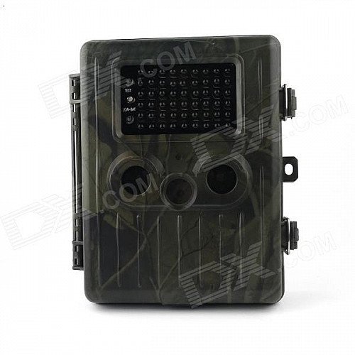 Other Features Screen display: 2.5'' LCD; Image sensor: 1/2.5'' CMOS; Effective Pixels: 8.0 MP, Max. interpolation: 12.0 MP; Focus: F/No=3.0, FOV (field of view): 52 degrees; Image format: JPEG; Video Format: AVI; Video Resolution: 1080P, 720P, VGA; Exposure Compensation: Auto; ISO: Auto; Anti-Shake: Yes; White Balance: Auto; Scene Mode: Outdoors; Built-in 32MB memory, supports SD card up to 32GB; Audio System: Dual channel; Data Interface: Micro USB; AV Interface: 3.5mm jack; Battery: 2000mAh lithium battery; Language: English / German / French / Russian / Spanish; PIR sensor: Multi zone; IR filter: Full automatic IR filter; PIR sensitivity: Dual PIR with 3 sensitivity levels (High / Normal / Low); PIR sensing distance: 65 feet / 20m; PIR sensor sight angle: 60 degrees; IR night version: 42-LED; Night vision distance: 65ft / 20m; Low battery alert: Yes; MMS / SMS / Email / FTP function via GSM 850 / 900 / 1800 / 1900MHz; Trigger time: 1.1s; Trigger time interval: 1s~60 minutes; Stand-by current:
