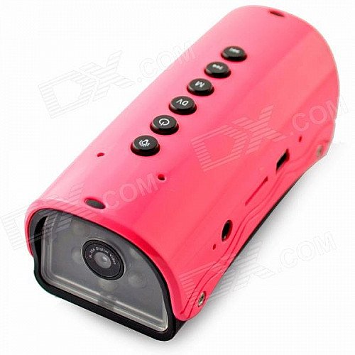 YDDVF Bike Mount 300KP Wide Angle Sports DVR Camcorder w/ TF / FM / Speaker / Flashlight - Deep Pink