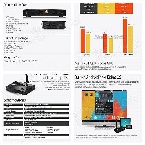 | Chipset | RK3288 Quad-core 1.8GHz (Cortex-A17) |