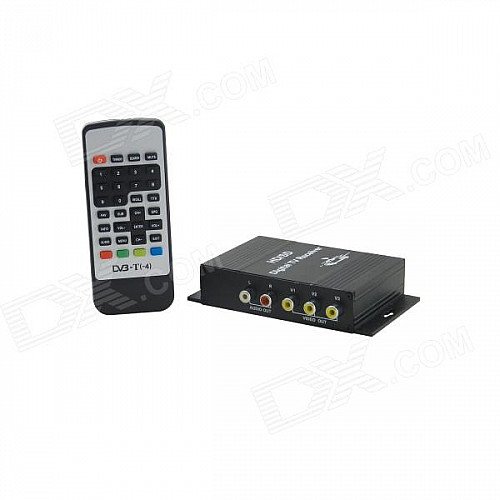 DVB-T Dual Tuner Digital Car TV Receiver Box w/ Antenna / MPEG-4 / 2-Tuner / 4-Video - Black