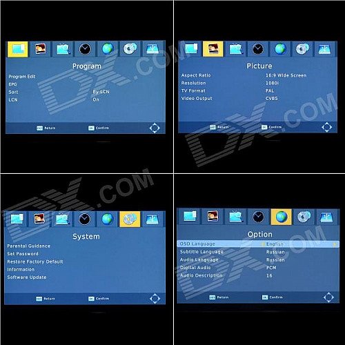 - OSD language: English / French / German / Spanish / Portuguese / Russian / Italian / Swedish / Czech / Danish