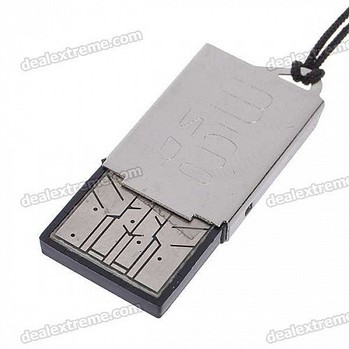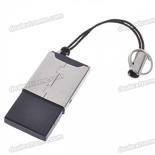 This USB 2.0 SDHC / TF card reader is portable and can instantly convert your SDHC / TF card into a USB flash drive. Via this card reader, you can transfer photos, music, and other media and data between your computer and your cell phone, digital camera, PDA, tablet PC, digital picture frame, or other digital device. This useful card reader is in super mini size and with a strap to use and carry conveniently.