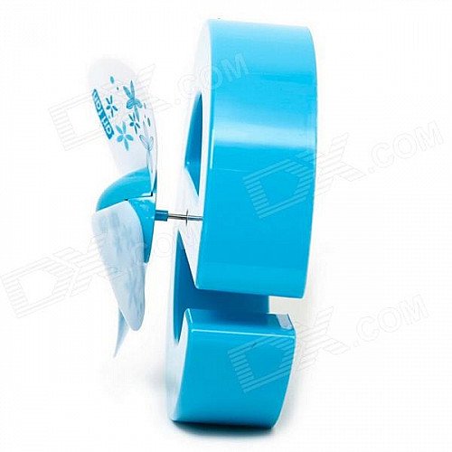 Cute E-Shaped Rechargeable USB Mini Desk Fan - Blue
