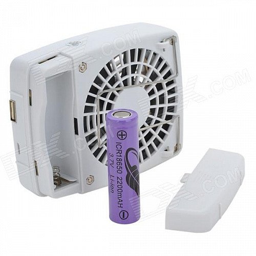GT825B Portable USB Mini Travel 7-Blade Fan w/ 5V 1A USB Output - White (18650)
