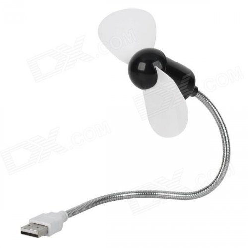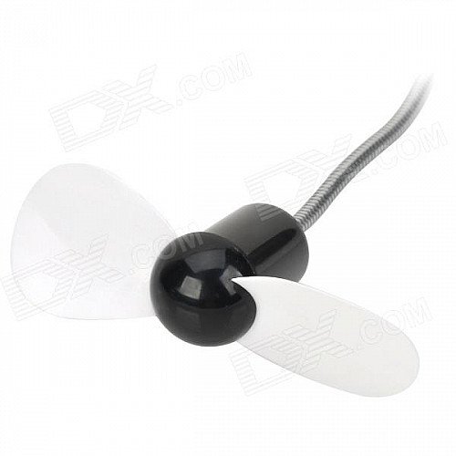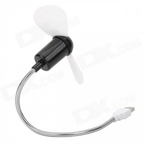 HW-901 Bending Snake Tube USB Powered 2-Blade Fan - Black + White + Silver
