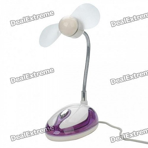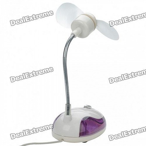 Unique USB Powered Flexible Neck 2-Blade Desktop Cooling Fan - White + Purple