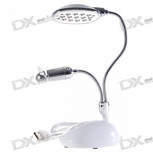 USB Powered Desktop Fashion 13-LED Lamp + Fan Combo (White Light 115CM Cable Length)