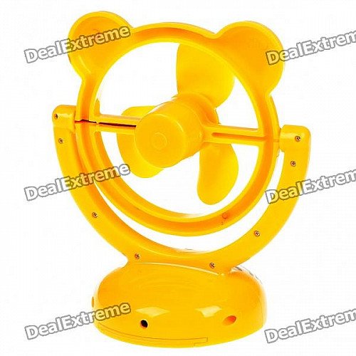 USB/3*AA Powered Cute Tiger Style 3-Blade Cooling Desk Fan - Yellow