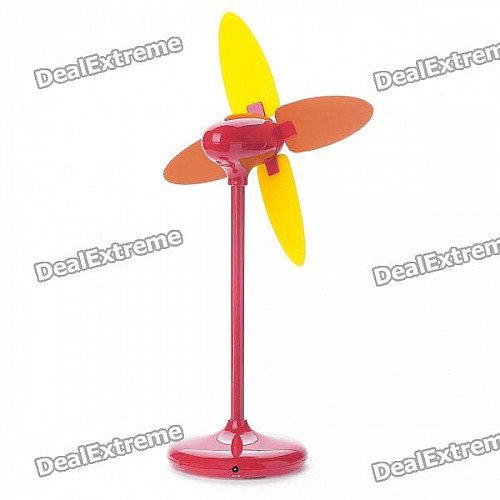 USB/3xAAA Powered 4-Blade Cooling Desk Fan - Red