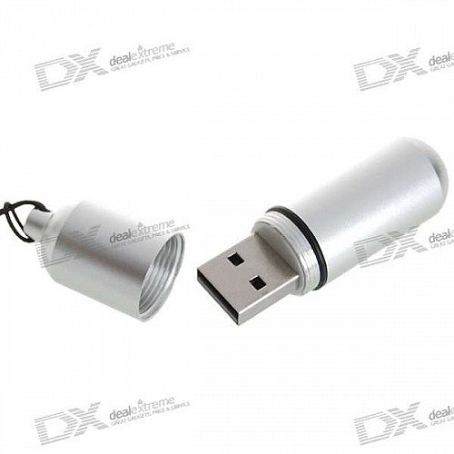 Aluminum Pill Shaped USB 2.0 Flash/Jump Drive with Neck Strap - Silver (4GB)