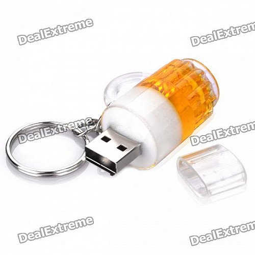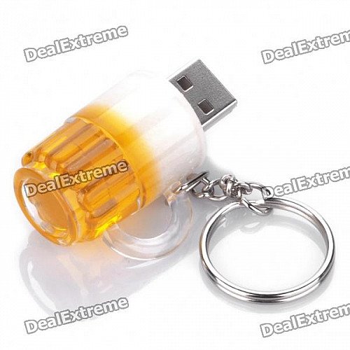 Beer Mug Style USB Flash/Jump Drive with Key Ring - Yellow + White (2GB)