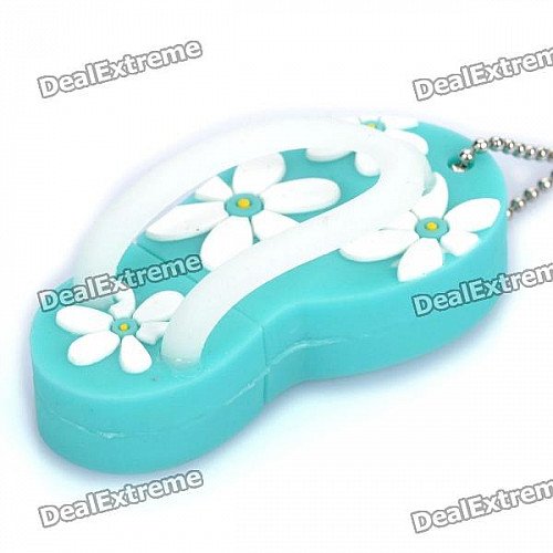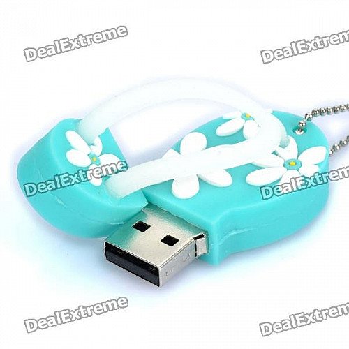 Cute Slippers Style USB Flash Drive with Chain - Blue (16GB)