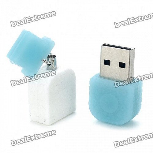 Cute USB 2.0 Silicone Housing USB Flash Drive - White + Light Blue (2GB)