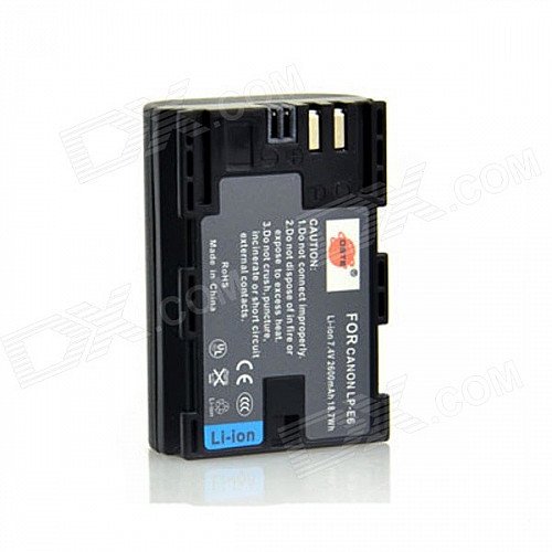DSTE LP-E6 7.4V 2600mAh Decoded Li-ion Battery for E0S 5D Mark II / E0S 5D Mark III + More - Black